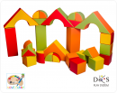 Products in this category are in size 20 cm-multiples. Medium playing set contains nine different shapes of products. Because of softer foam and smaller size, these are ideal for children 2 – 4 years of age. For them, Medium playing set parts are game and equally learning. It helps them cultivate imagination, spatial perception and children will explore basic shapes and colours. Suitable for game and stacking, cubes and prisms can be also used by children for sitting as tabourets.